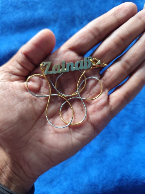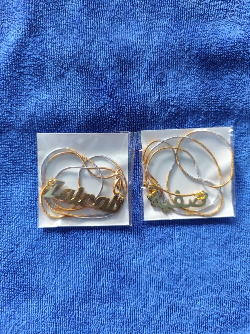 Is your dear one/spouse/girlfriend pissed at you? Then this is the right time to surprise your mate with the gold plated name pendant, and have a joyful time to patch up again, Available in chain design Material- Brass. Size around 18 inches. Available in chain and Name Pendant Making time for 5 working days ( excludes weekends and public holidays). Click on the Whatsapp icon from the website or ping to 8446423963.