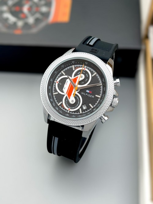 Round Tommy Hilfiger Rubber Strap Sliver Black Watch